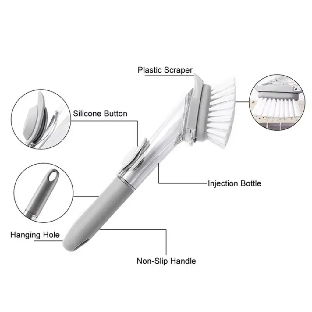Dish Cleaning Brush – 2-in-1 Long Handle Kitchen Brush with Soap Dispenser