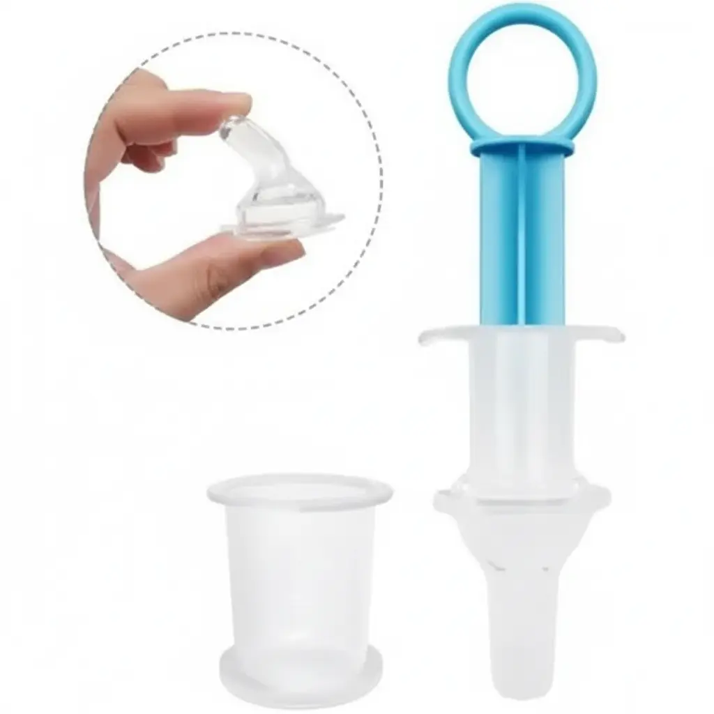 1 × Silicone Oral Feeding Syringe With Pacifier (Baby Medicine Feeder With Measuring Cup)
